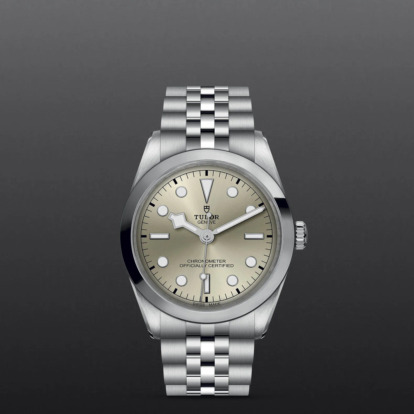 Bracciale in acciaio, finitura lucida e satinata, con chiusura pieghevole TUDOR “T‑fit” e fermaglio di sicurezza.